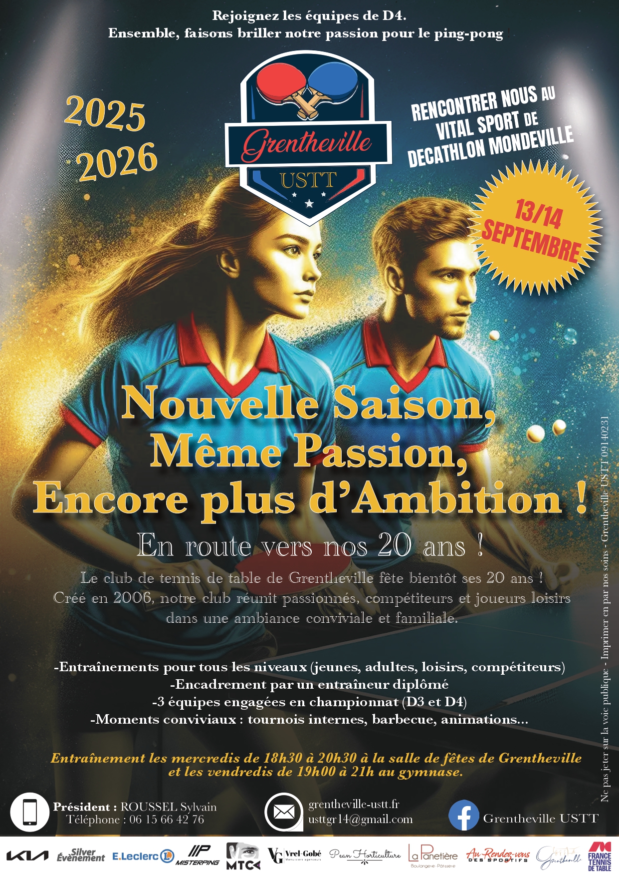 Grentheville USTT Informations communales Rejoignez nous pour une aventure passionnante au coeur tennis de table+